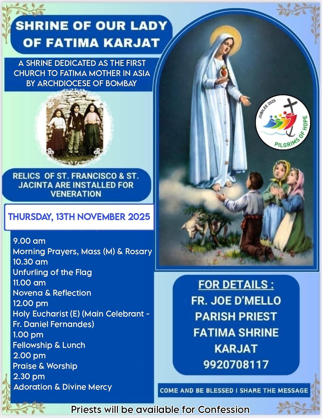 13th October 2025 Devotion and 90th Annual Pilgrimage schedule