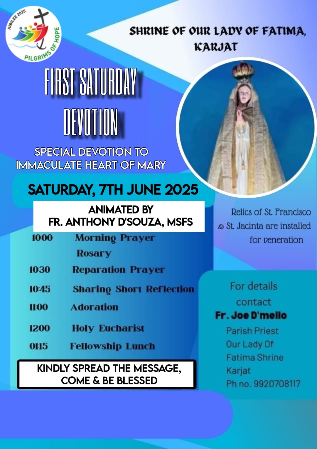 Inaugural Eucharistic Celebration (90th Anniversary of the Veneration of the Statue of “Our Lady of Fatima, at Karjat.”)